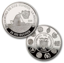 | 8 reales plata Ecuador | 25.000 sucres | 27,00 g | 40,00 mm | 12.000 colecciones |