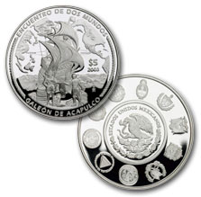 El anverso de la moneda ilustra el Galeón de Acapulco. Su significación se da en el ámbito del comercio internacional de los siglos XVI, XVII y parte del XVIII y significó un intercambio cultural con todos los países de oriente.