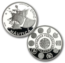 En el anverso de la moneda se representa una carabela (el más célebre navío de los Descubrimientos), un cuadrante y estrella, éste último punto de referencia indispensable del cuadrante para la obtención de la posición del navío.