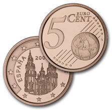 Reproduce en el anverso la fachada de la Catedral de Santiago de Compostela. El reverso es el común a todos los países de la Zona Euro.