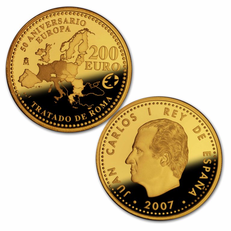 Con el lema «Logros Europeos» que cada país interpreta de una forma distinta se emite la cuarta serie de monedas de colección del Programa Europa. En el caso español la emisión está dedicada al 50 Aniversario del Tratado de Roma, firmado en la capital italiana el 25 de marzo de 1957, por el que se constituyó la Comunidad Económica Europea, germen de la Unión Europea.