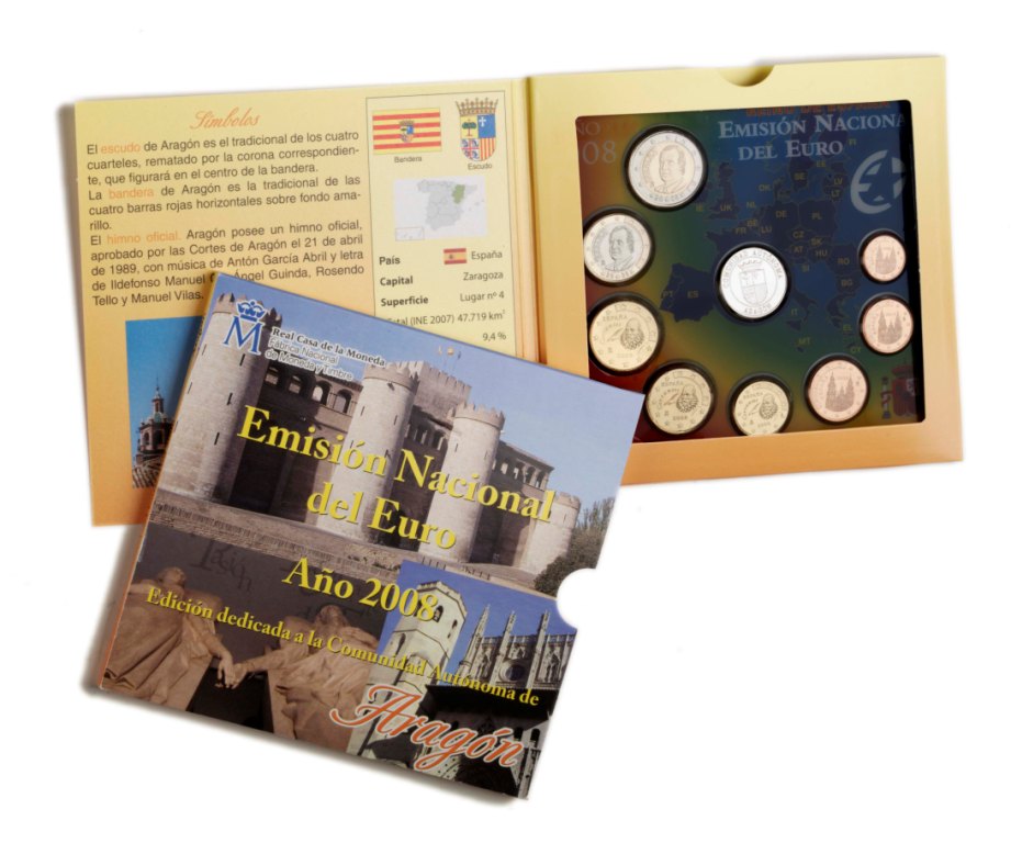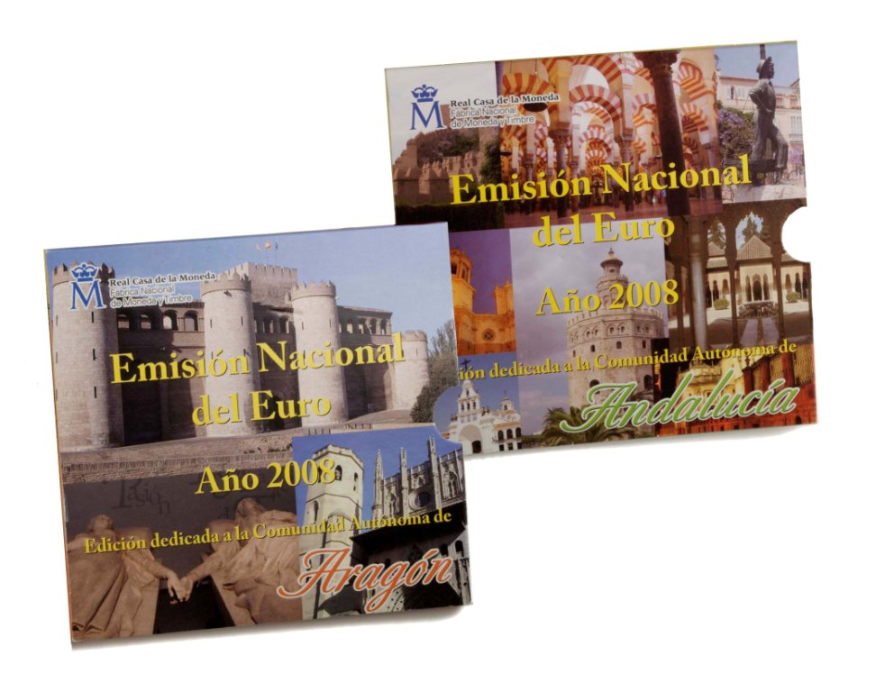 En esta edición, el blister con monedas de Euro no circuladas incluye una medalla en plata de ley con el escudo de Andalucía o bien con el tradicional escudo de Aragón.