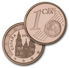 Reproduce en el anverso la fachada de la Catedral de Santiago de Compostela. El reverso es el común a todos los países de la Zona Euro.