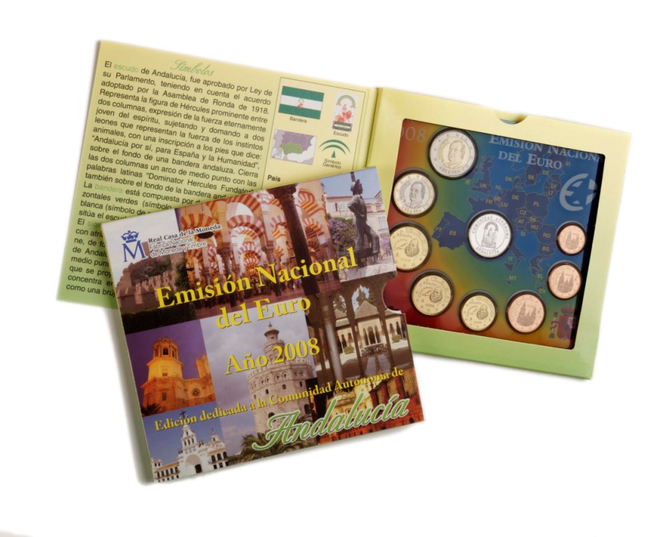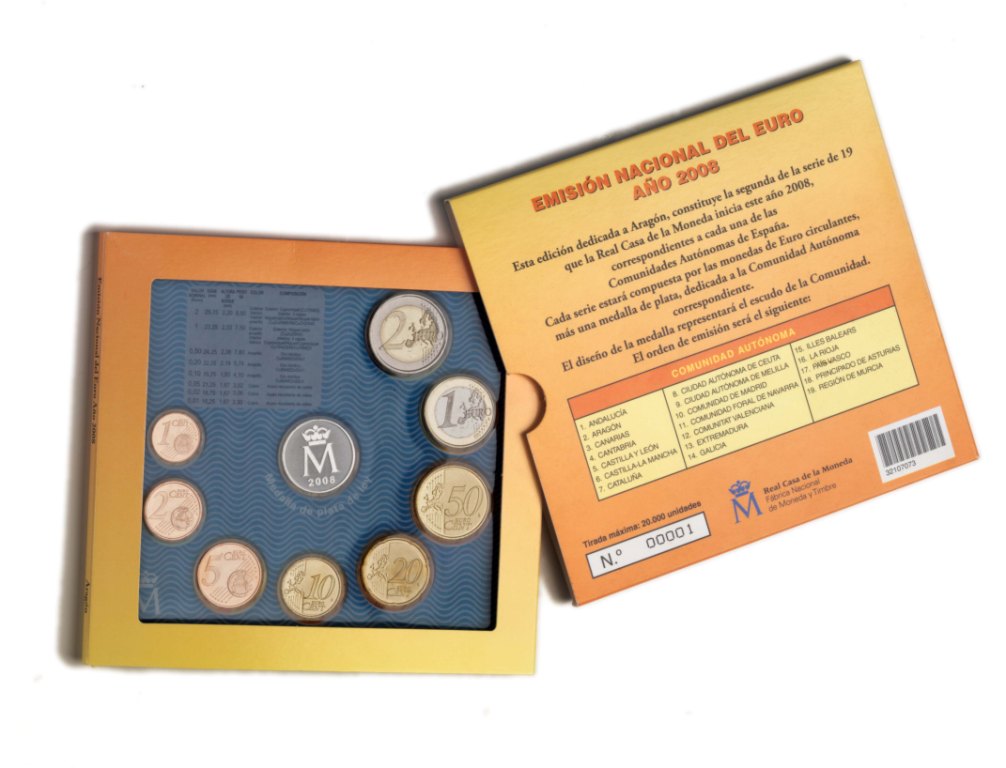Esta emisión incluye la colección de las monedas en euros españolas del año 2008, presentadas en edición limitada dentro de un práctico blister numerado que protege las monedas y, al mismo tiempo, permite la perfecta visualización de ambas caras de las mismas.