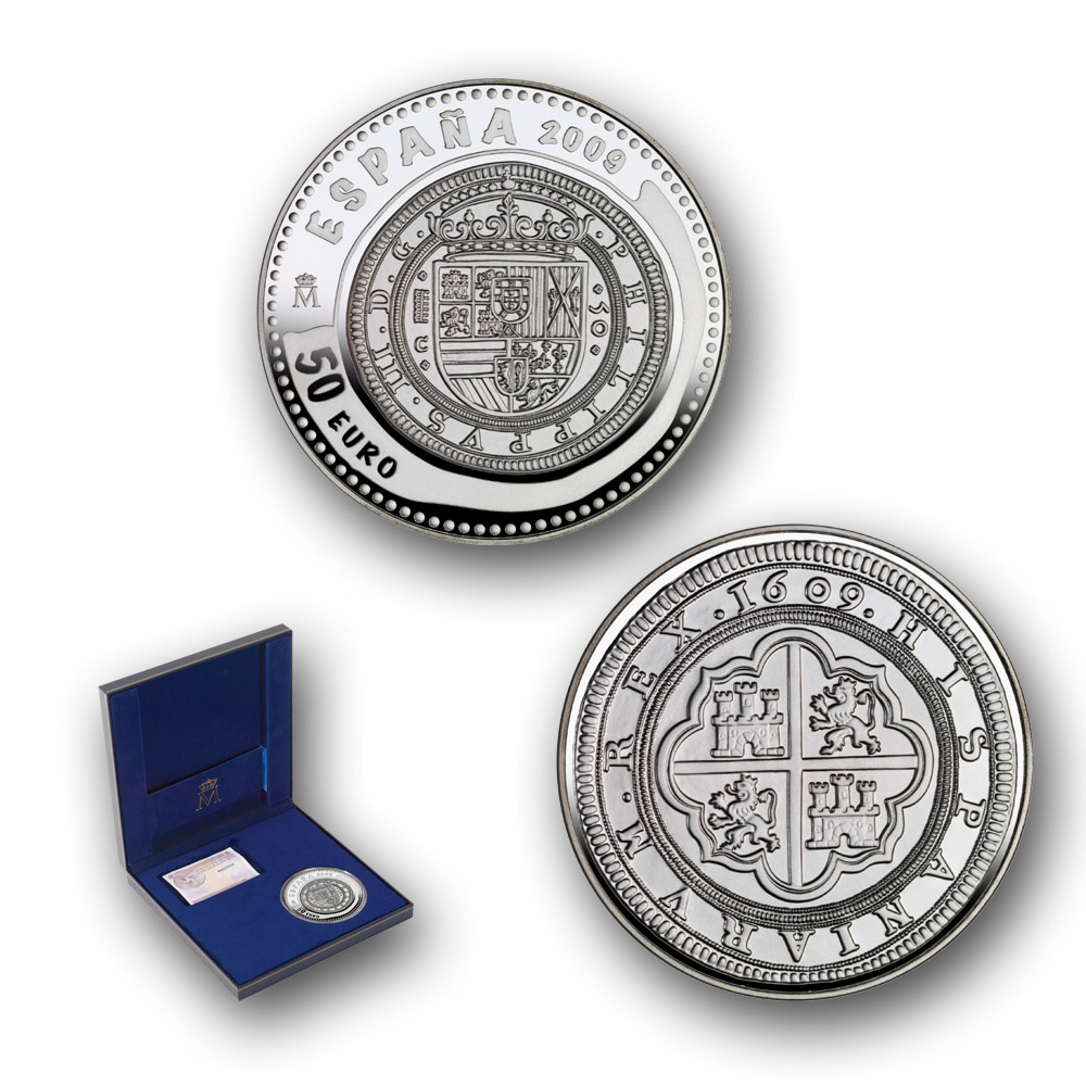 | Cincuentín | Plata 925 milésimas | 50 € | 168,75 g | 73 mm | 6.000 |