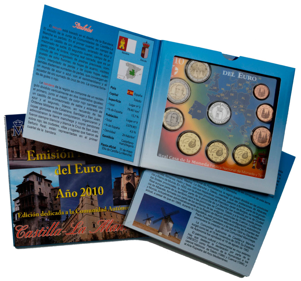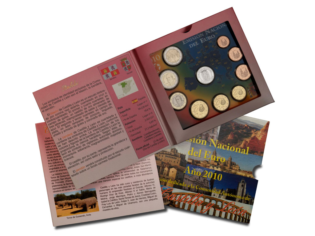 Esta emisión incluye la colección de las monedas euro españolas del año 2010, presentadas en edición limitada dentro de un práctico blister numerado que las protege y, al mismo tiempo, permite la perfecta visualización de ambas caras de las mismas.