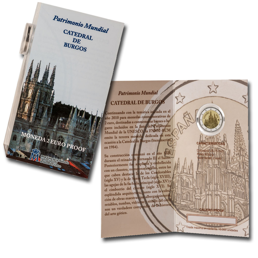 | 2 Euros Conmemorativa | 8,50 g | 25,75 mm | Proof | 10.000 |