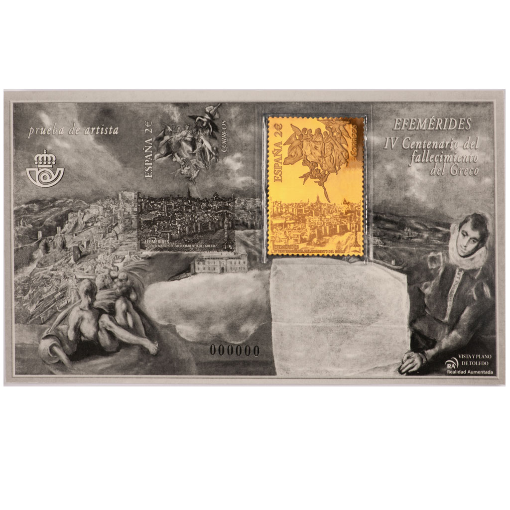 En 2014 se ha emitido la prueba de artista de la hoja bloque dedicada al IV Centenario del fallecimiento de El Greco. El sello enmarca un fragmento del cuadro "Vista y Plano de Toledo".