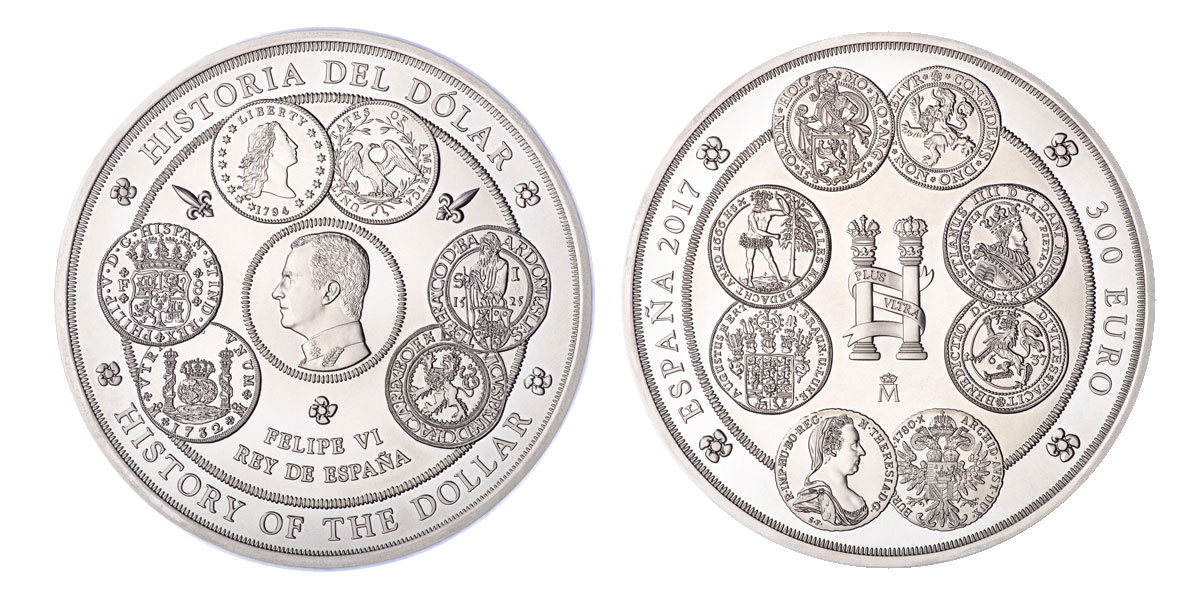 La Real Casa de la Moneda ha querido dedicar su primera acuñación de una moneda de un kilo de plata a la historia del dólar americano, cuyos orígenes se remontan al thaler centroeuropeo y a la América virreinal española, con el real de a ocho.