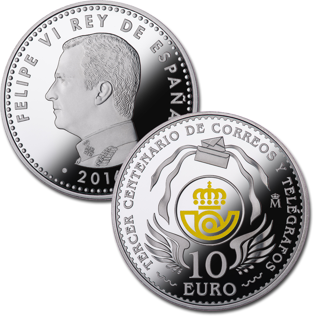 Con motivo del 300 aniversario de la constitución de Correos (1716-2016), la Fábrica Nacional de Moneda y Timbre-Real Casa de la Moneda pone a disposición del público, una moneda de colección acuñada en plata de ley con calidad "proof" y facial de 10 Euro.