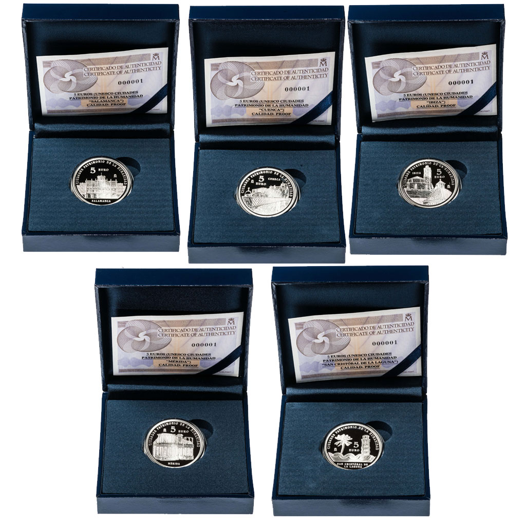 En el anverso (común para las cinco piezas) se reproduce el logotipo de la UNESCO acompañado, a la derecha, por el emblema oficial de la Convención del Patrimonio Mundial.