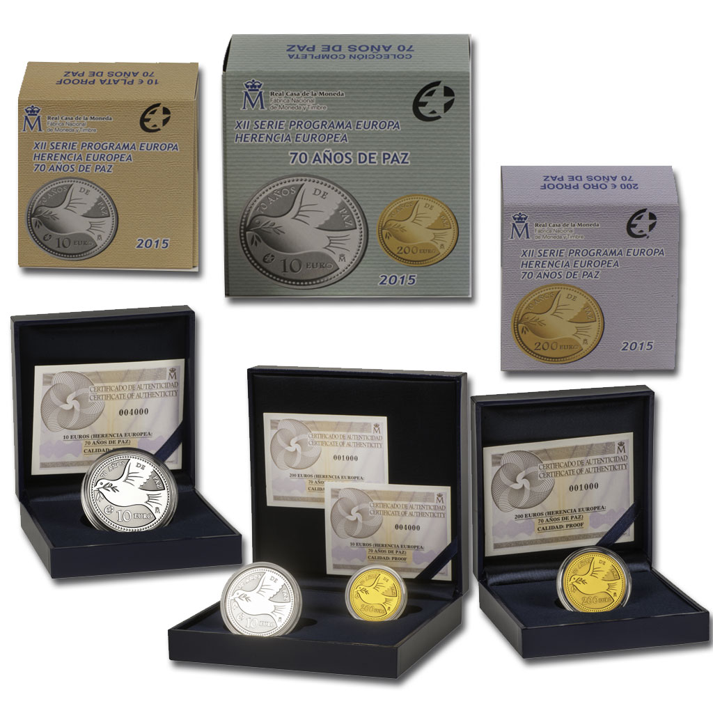 Con el lema "Herencia Europea" la Real Casa de la Moneda emite la duodécima serie de monedas de colección del Programa Europa. La emisión conmemora los 70 años de paz en Europa, tras el final de la Segunda Guerra Mundial en 1945.