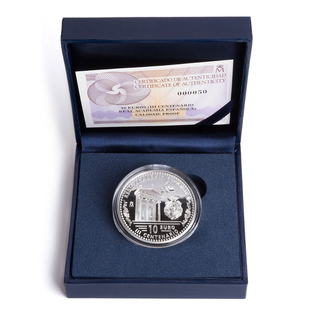 Con motivo del III Centenario de la Real Academia Española, la Real Casa de la Moneda acuña una nueva moneda de colección cuyas leyendas y motivos están dedicados a esta importante efeméride.