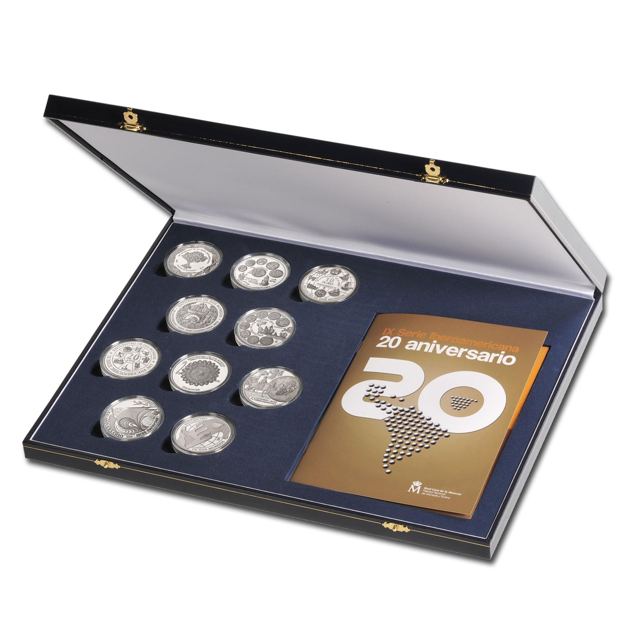 En esta ocasión los Países participantes hemos querido conmemorar el 20 ANIVERSARIO de la colección dándole ese mismo título a la IX Serie, compuesta por ocho monedas más dos medallas conmemorativa, con el mismo tamaño de siempre, el Real de a ocho, también llamado onza española, de 40 mm. de diámetro y 27 gramos de peso.