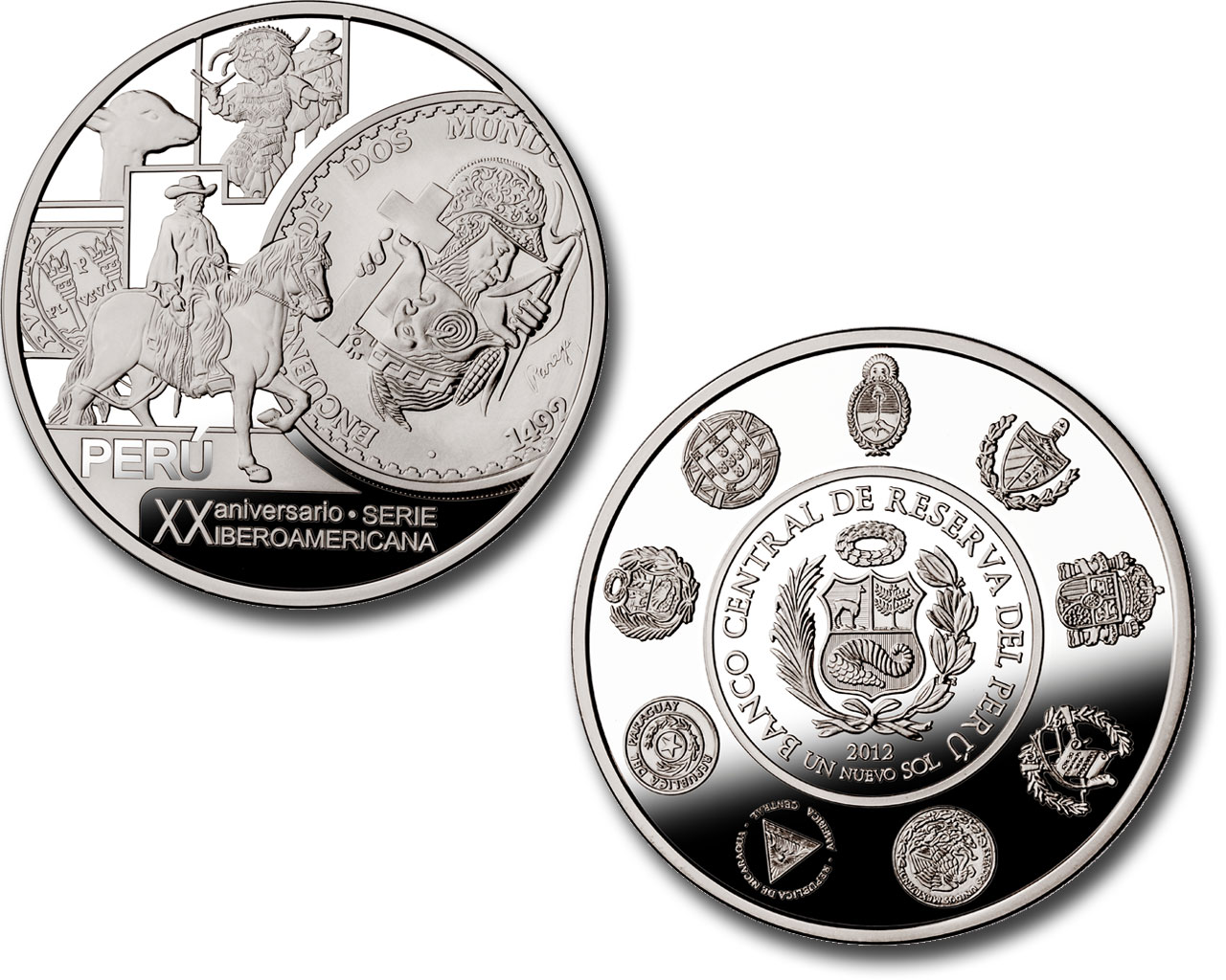 | 8 reales plata Perú | 1 Nuevo Sol | 27,00 g | 40,00 mm |