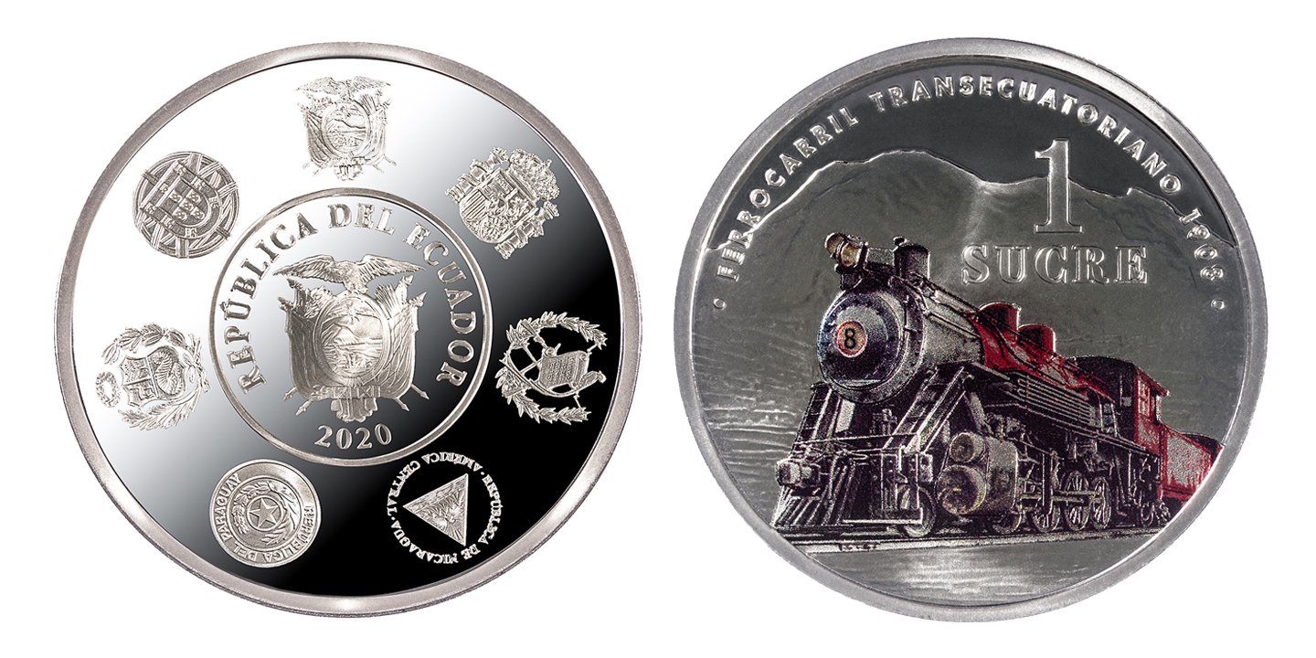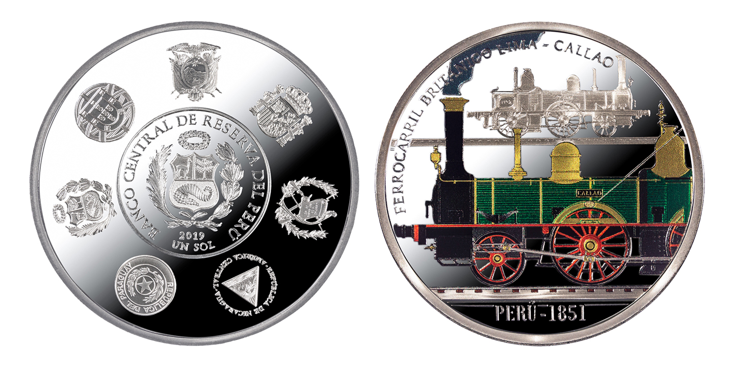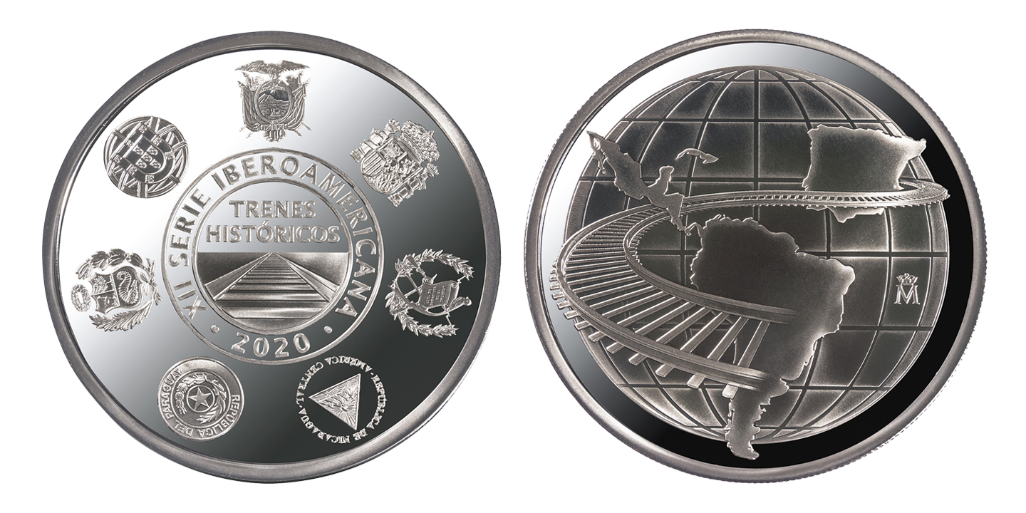 A estas piezas, y como ocurre en todas las colecciones de esta serie, le acompaña una medalla conmemorativa en cuyo anverso se refleja una alegoría del tren como nexo de unión entre todos los países iberoamericanos y que muestra los escudos de todos los países participantes en su reverso.