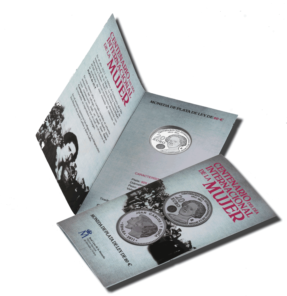 En el año 2011 se celebra el Centenario del Día de la Mujer. La Fábrica Nacional de Moneda y Timbre - Real Casa de la Moneda (FNMT-RCM) conmemora tan importante efeméride con la acuñación de esta moneda de colección en plata de 20 €, que se presenta en una elegante carterita, numerada y limitada a 12.000 unidades.