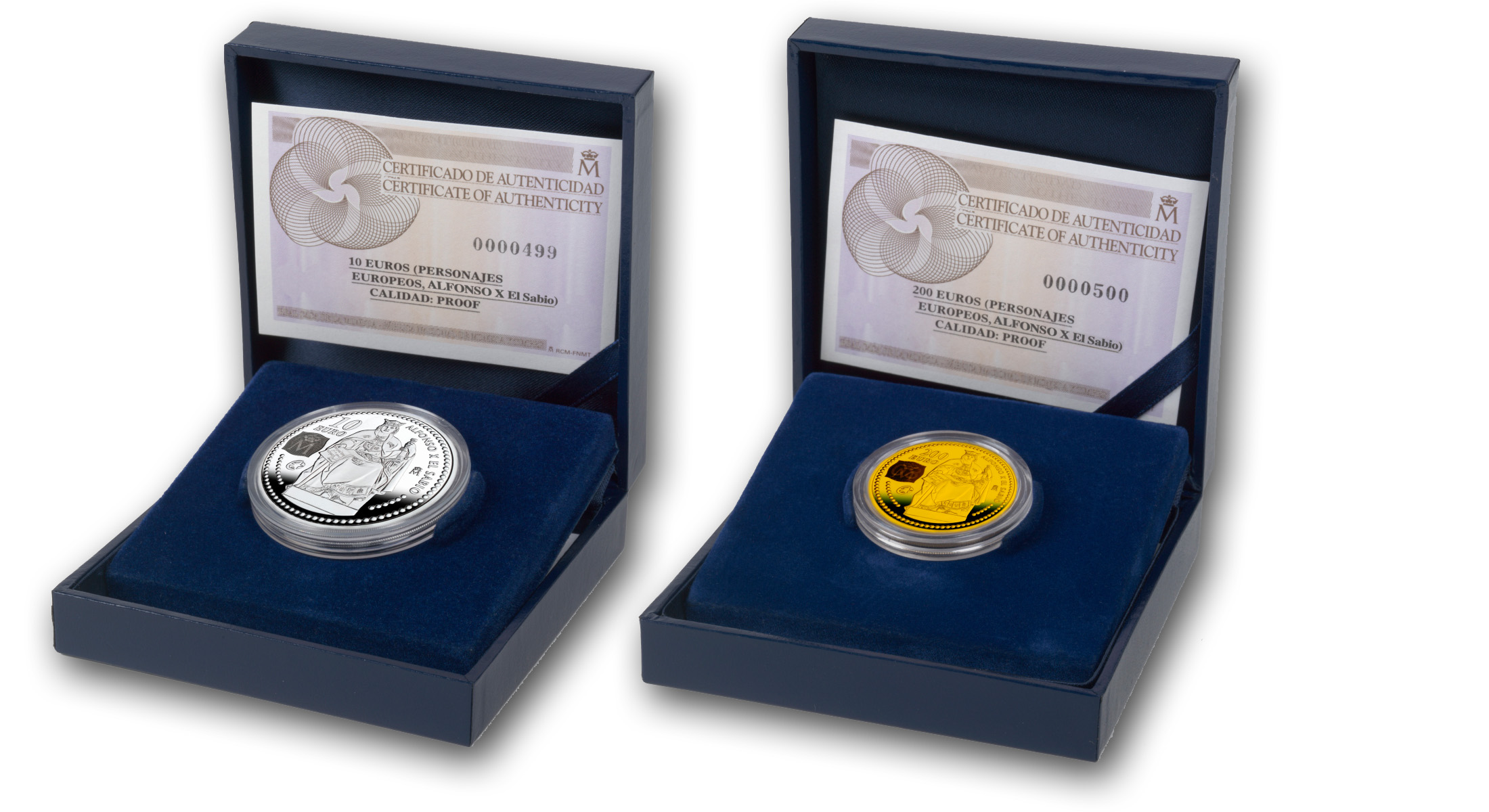 Con el lema "Herencia Europea" la Real Casa de la Moneda emite la V Serie de Monedas de colección del Programa Europa. La emisión está dedicada a recordar al Rey Alfonso X el Sabio (1221-1284), reconocido en todo el mundo por la creación de la Escuela de Traductores de Toledo y por su extensa obra jurídica, histórica, científica y literaria.