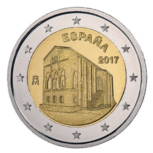 La moneda de esta serie emitida en el año 2017 está dedicada a la iglesia de Santa María del Naranco (Asturias).