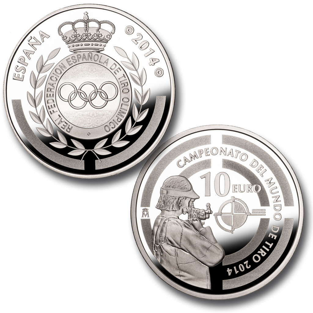 En el anverso, en el centro de la moneda, se reproduce el escudo de la Real Federación Española de Tiro Olímpico.