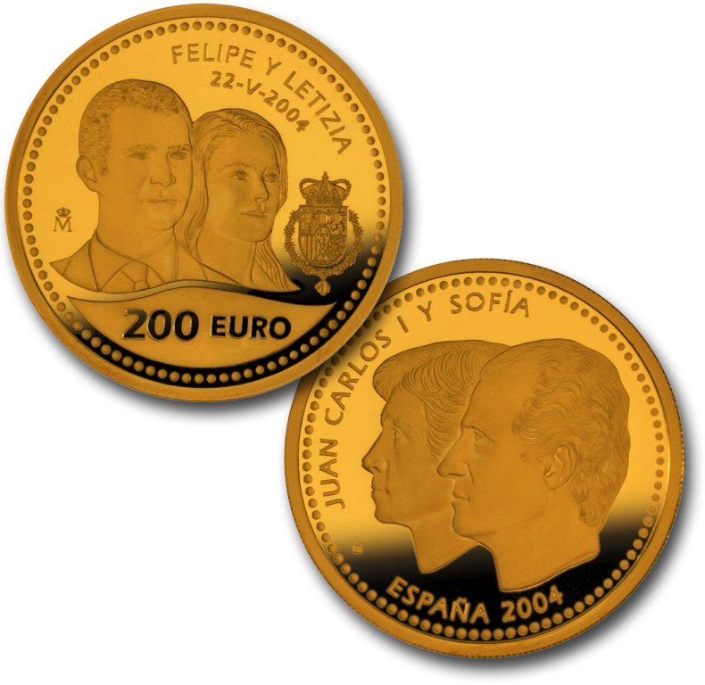 A historic event has taken place in the spring of 2004, namely, the wedding of His Royal Highness the Prince of Asturias, Felipe de Borbón y Grecia, and Letizia Ortiz Rocasolano. To commemorate this outstanding event collector coins with face values of 10 and 200 Euros has been approved, minted and released.