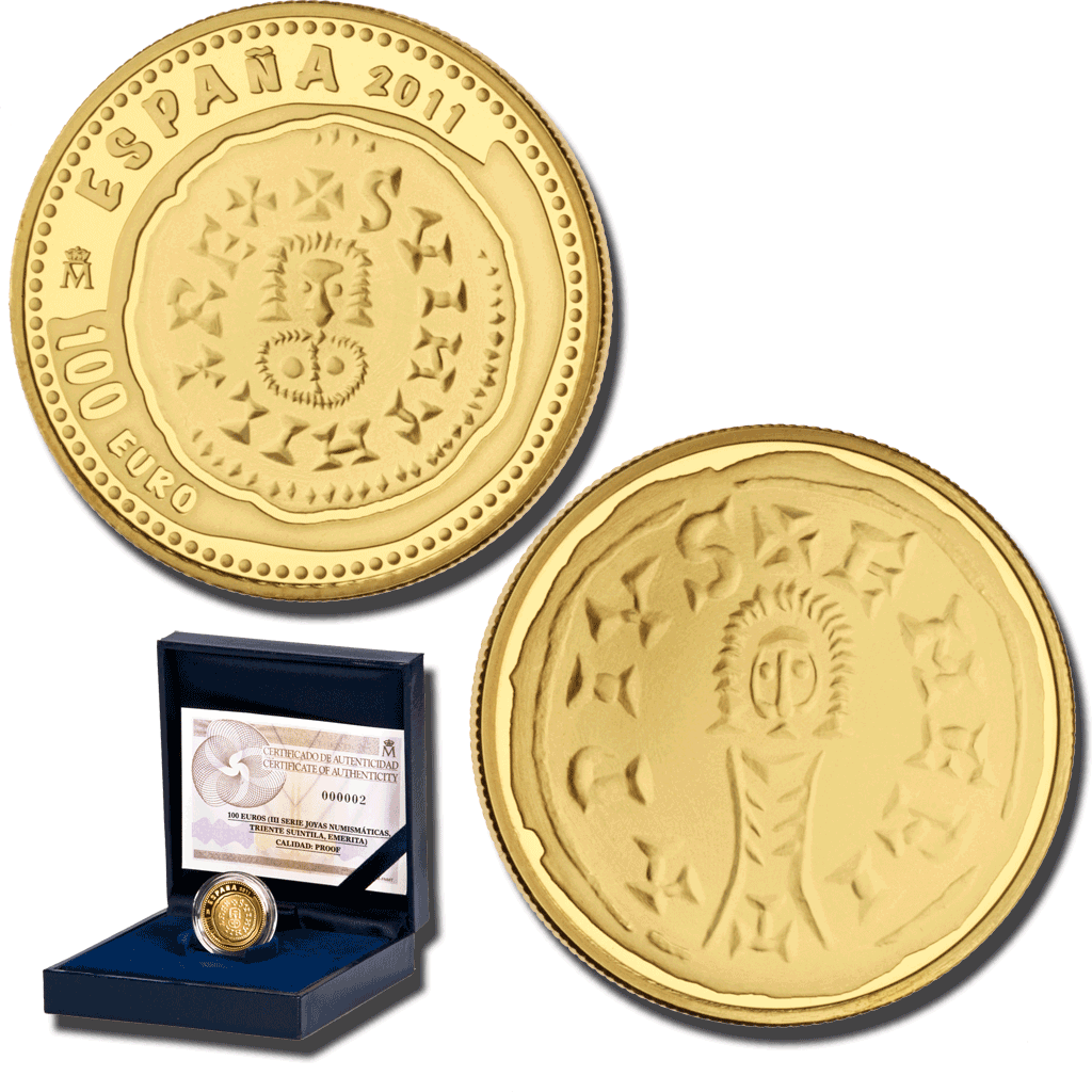 The Visigoths were present in Spain from the mid 5th Century to the beginning of the 8th C. Of consequence were the reigns of Leovigild (568-586) and Swinthila (621-631). Leovigild made Toledo the true capital of the Kingdom. Under Swinthila Spain became an independent country with sovereignty for the first time in its history, its reach spreading throughout the entire Iberian Peninsula plus the Gallia Narbonensis. The tremissis that are reproduced in this series were minted in Toledo and in Emerita (present-day Merida) during their reigns.