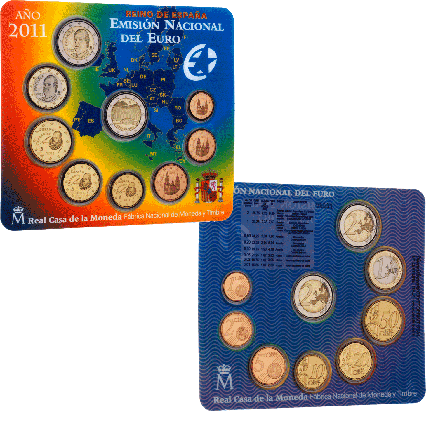 This limited edition release includes the set of Spanish Euro coins for 2011 encased in a practical, numbered blister pack that protects the coins while at the same time enabling both sides of the coins to be viewed in their entirety.