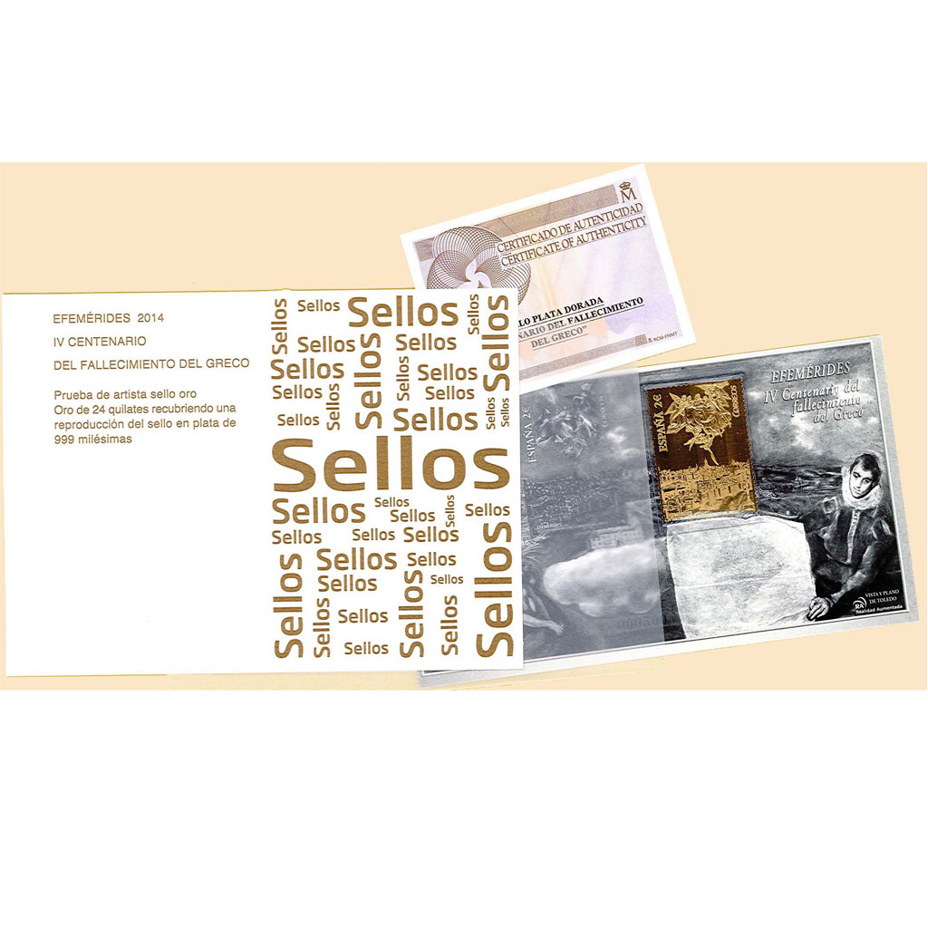In 2014, the artist's proof of the block sheet commemorating the Fourth Centenary of El Greco's death was issued. A detail from the painting "View and plan of Toledo" is framed within the stamp.