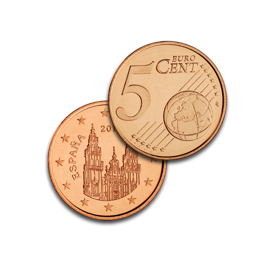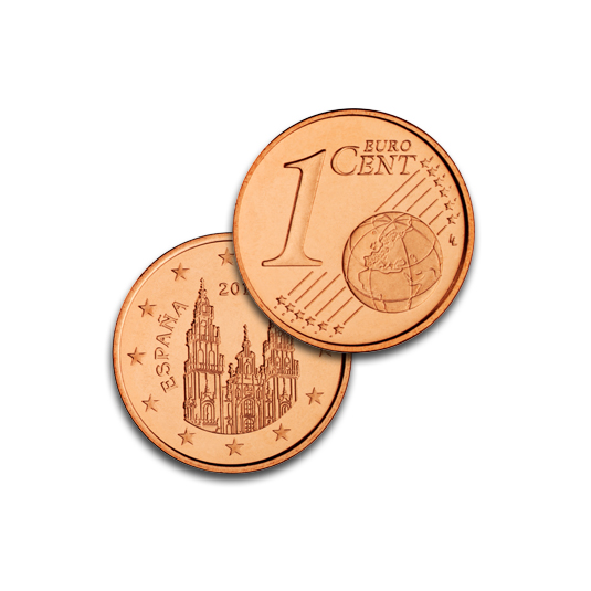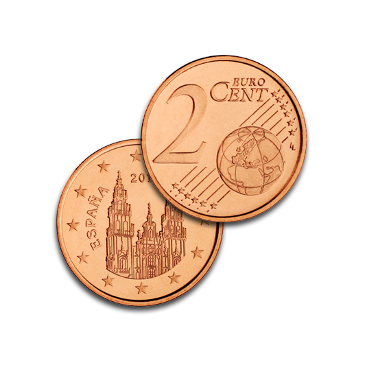 Reproduce en el anverso la fachada de la Catedral de Santiago de Compostela. El reverso es el común a todos los países de la Zona Euro.