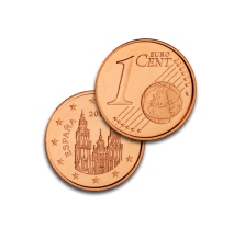 Reproduce en el anverso la fachada de la Catedral de Santiago de Compostela. El reverso es el común a todos los países de la Zona Euro.