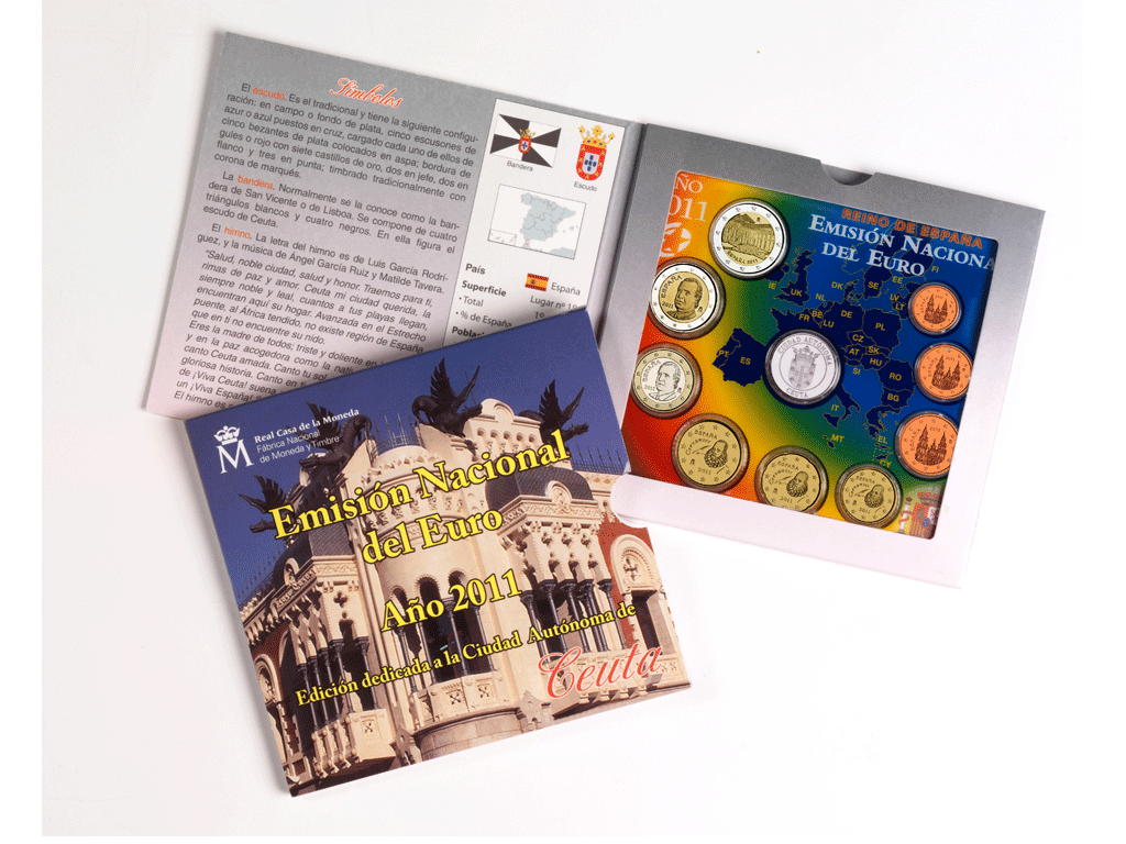 En esta edición, los blister con monedas de Euro no circuladas incluyen una medalla en plata de ley con el escudo de Cataluña y con el escudo de la Ciudad Autónoma de Ceuta.