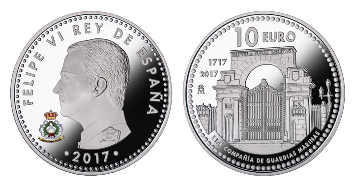En el reverso se reproduce una imagen de la puerta principal de entrada a la Escuela Naval Militar de Marín (Pontevedra), donde se forman los oficiales de la Armada.